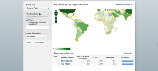图书馆自2017年以来,连续三年基于InCites中的10-11年滚动数据,运用大数据分析和科研关系算法,对我校ESI学术数据进行加工处理、深度挖掘。通过数据关系映射,分析我校学科发展趋势、相关教师、学院贡献度以及优势合作机构和地区,科学评估学校、学科发展现状;并与相关高校、学科进行对比,定期编写动态学科评估报告,供校领导、相关职能部门和学院参考。经过3年的积累,图书馆在今年3月的报告中成功预测出我校工程学学科进入ESI前1%的时间。