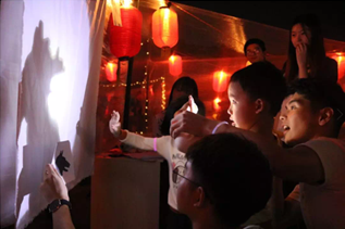 接下来是富有创意和诗意的光影长廊活动。在读书之月,体验月光烂漫与彩灯绚烂。我们有传统猜灯谜活动。由社团内部人员在红纸上抄写好灯谜挂场地中,同学们猜中了便可去对答案处领取积分。一句小小的灯谜,亦庄亦谐,古老与现代相结合的文字游戏展现出文字的智慧。还有一站到底的游戏,每次游戏由五人参加,抽签出一人或两人来对抗剩下的人,轮流答题,每方答题不能超过30秒,活动热烈而精彩。我们也有水中捞月、跳房子、画影图形和手指间的光影、限时猜字的游戏,每个游戏各具特色,无不吸引大量同学积极参加。本次活动的游戏都受到了光大同学的热烈欢迎,他们争先恐后地参加到活动中去,展现出自己的才华也玩得开心。在同学们娱乐的同时,学习传统文化国粹,发扬争先创优的精神,展现大学生积极乐观的精神风貌。