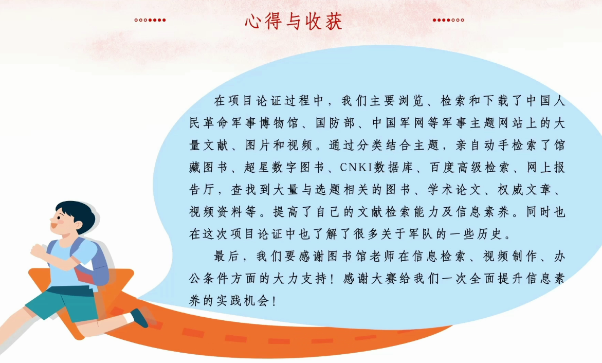 本次大赛历史2个月,不但检验了图书馆信息素养教育成效,也激发了学生对信息素养学习的热情,实现了“以赛促学、以学促知、 以知促用”的目的,进一步提升了我校学生信息素养水平。