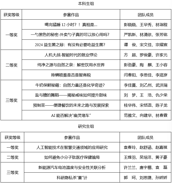 在数字化和智能化时代背景下,大学生需要具备信息获取、分析与应用的综合能力,以应对新时代的机遇与挑战。本次大赛特别注重融入人工智能素养的培养,通过赛题设置的优化、指导方式的创新和AI工具的灵活应用,全面提升了参赛学生对AI技术的理解与实践能力。我校学子在赛事中不仅展示了信息素养与AI素养的综合实力,更彰显了他们理性应对数字化挑战、引领新时代创新发展的担当与潜力。