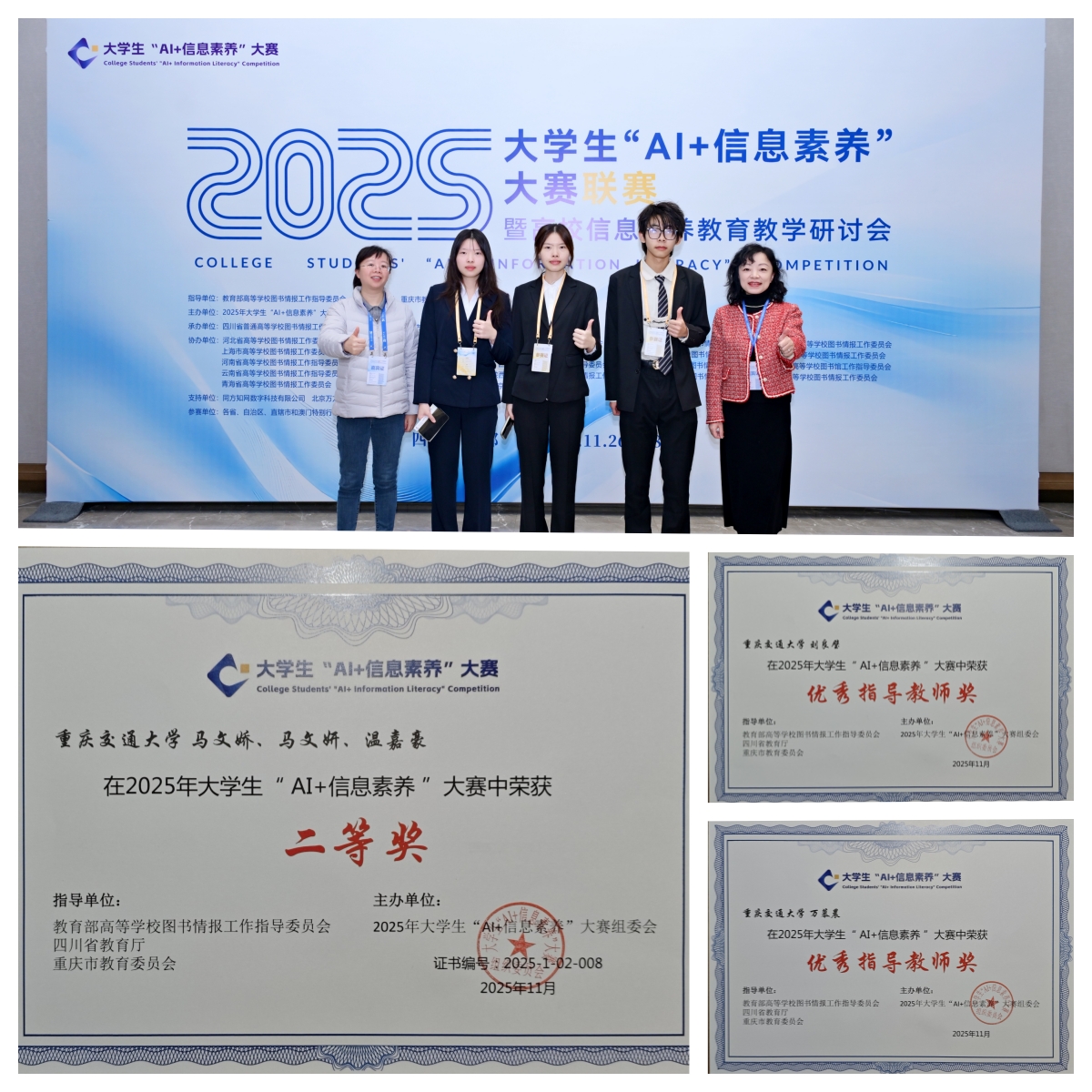 这次获奖不是终点,而是我校图书馆AI 素养教育的新起点。未来,图书馆将持续深化AI技术与信息素养教育的深度融合,进一步优化资源供给与服务模式,助力更多学子在人工智能时代精准获取、高效分析与创新利用各类信息资源,为学校“交通强国”人才培养贡献力量。