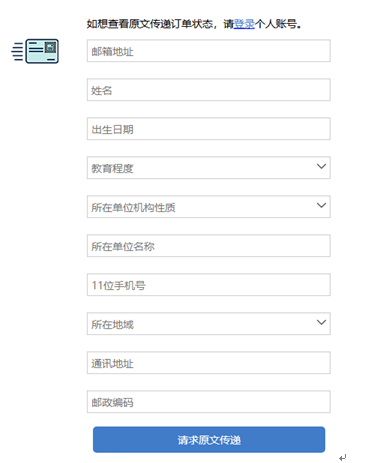 请求原文传递,填写以下信息,邮箱一定要正确填写!