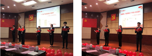 “信仰的力量——入党志愿书里的档案故事”是由重庆文理学院党委组织部、档案馆牵头,以老党员为采写对象,挖掘他们入党志愿书里的红色记忆,讲好身边的红色故事,其中有“把自己的一切——连最宝贵的生命献给党”,有“一个共产党员的初心与坚守——两次入党的谭紫光”,有“伉俪情深:两份跨越三十年的入党自愿书”,有“跨越三十年的入党转正申请”,这些档案故事感人至深。他们通过组织学生和老师,以“朗读者”的形式,声情并茂的将档案承载的红色传统和红色基因在主题党日活动中展示给在场观众。大家认真聆听了老师和同学们的激情朗诵和演绎,重温了老党员入党志愿书里感人肺腑的心声,无不为之动容。民主党派人士蔡双霜同志表示,“第一次参加这种活动,心灵受到极大震撼,对中国共产党和中国共产党员有了更新的认识”。