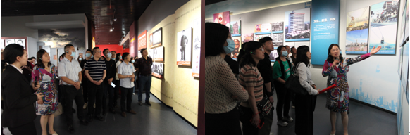 在《民族脊梁﹒巴渝丰碑——中国共产党重庆革命史(1921-1949)》展,参观的同志们不时在展板前驻足凝望,或拍照记录,或认真聆听讲解,通过品读一件件传递热血真情的手稿和彰显忠魂铁骨的照片,大家从中重温了中国共产党人为实现使命前赴后继、英勇奋斗的光辉历程,接受了一次深刻的党史、党性教育;在《重庆记忆——近代以来的重庆发展变迁》展,党总支书记、副馆长陈国容带领大家参观学习了重庆近代以来至现在整个都市的发展历程,在一系列文献、照片、视频和实物面前充分感受重庆从昨天走到今天付出的不懈努力和实现的伟大变迁。